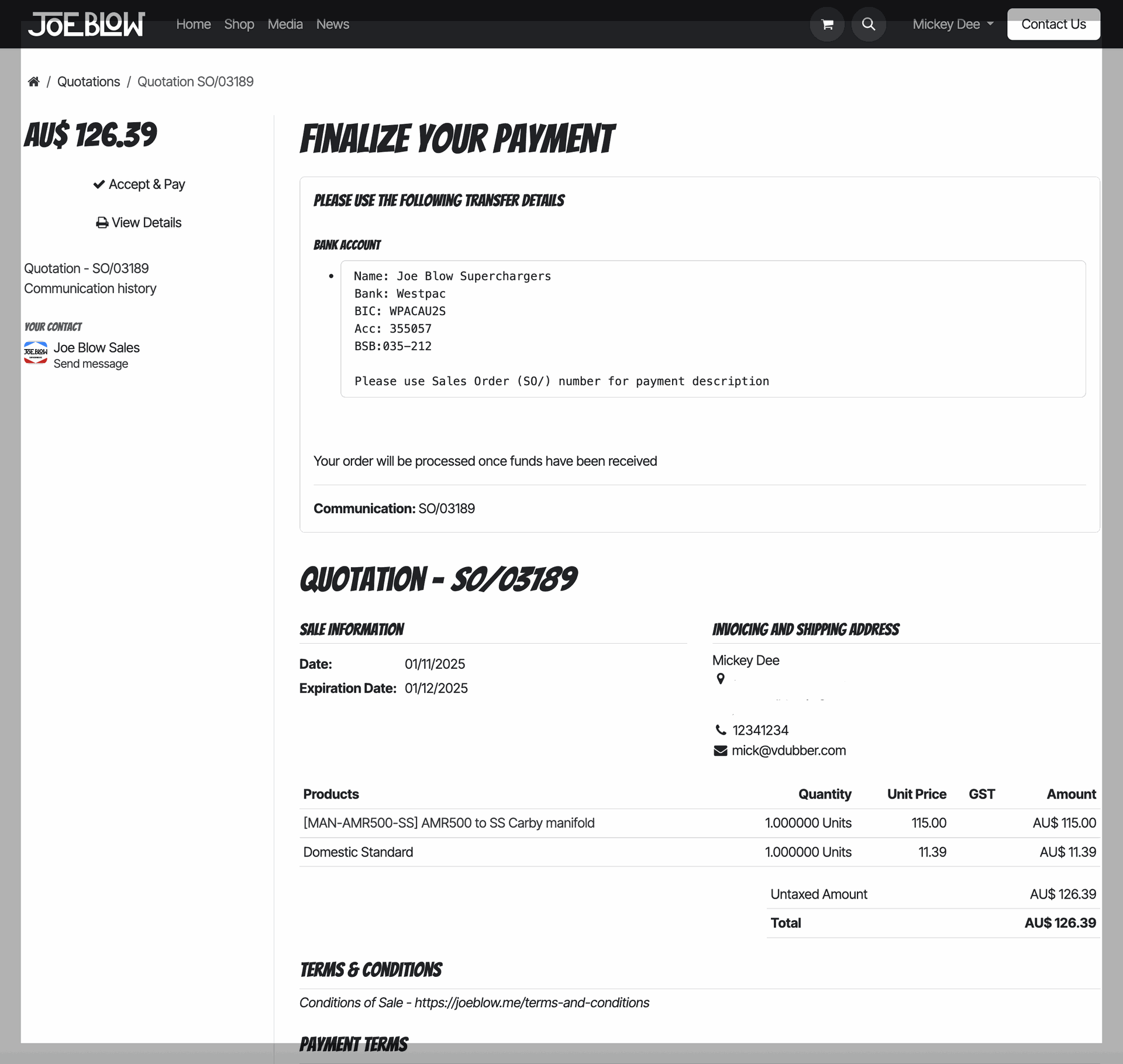 You can accept the quotation and pay by clicking on the 'Accept and pay' button. This will give you the option of paying via Paypal or Wire transfer. So if you checked out wanting to pay via Wire Transfer but then change your mind and want to pay via PayPal, just select that option from the quotes page.